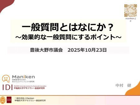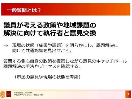 テーマは、『一般質問とはなにか?~効果的に一般質問にするポイント~』