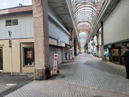 木藤氏の手がけた面影は残っているものの、平日日中の商店街は閑散としており