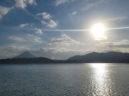 周囲15kmのカルデラ湖は九州最大と迫力があり開聞岳も拝めました。