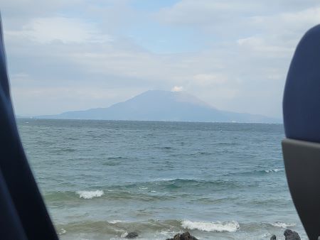 桜島は噴火してないように見えましたが、昼過ぎに無事到着。