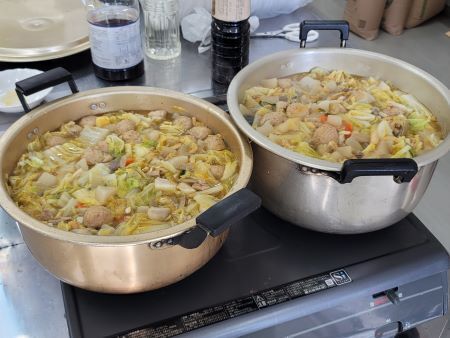 本日は、地区役員と有志で昼食の炊き出し。