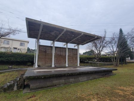 雨漏りする道の駅きよかわ屋外ステージ