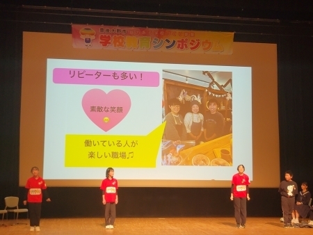 給食調理場栄養教諭による発表やプレゼンがおこなわれました。