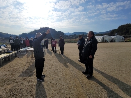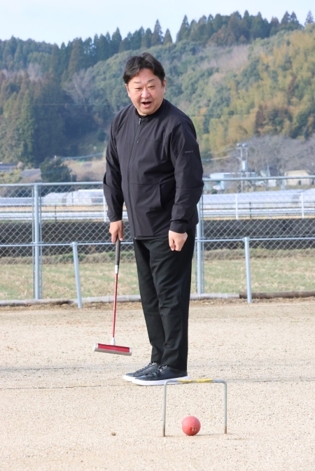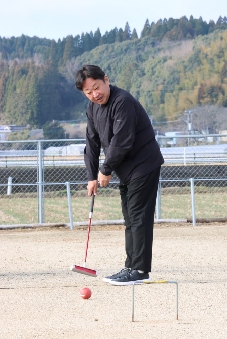 快晴の午前8時、三重町玉田の光明寮ゲートボール場を会場に、令和7年度大分県光明寮ゲートボール総合大会(佐藤祝会長)の開会式に出席させていただきました。三重町の各ゲートボールチーム、そして利用者からも2チーム参加。選手は元気に整列し開会しました。選手宣誓の後、私も始球式を行わせていただきました。球は無情にもゲートの真下で止まるという残念な始球式でしたが楽しませていただきました。