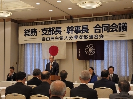 前日には、別府市の亀の井ホテルにおいて、自民党大分県連総務・支部長・幹事長合同会議が開かれ、